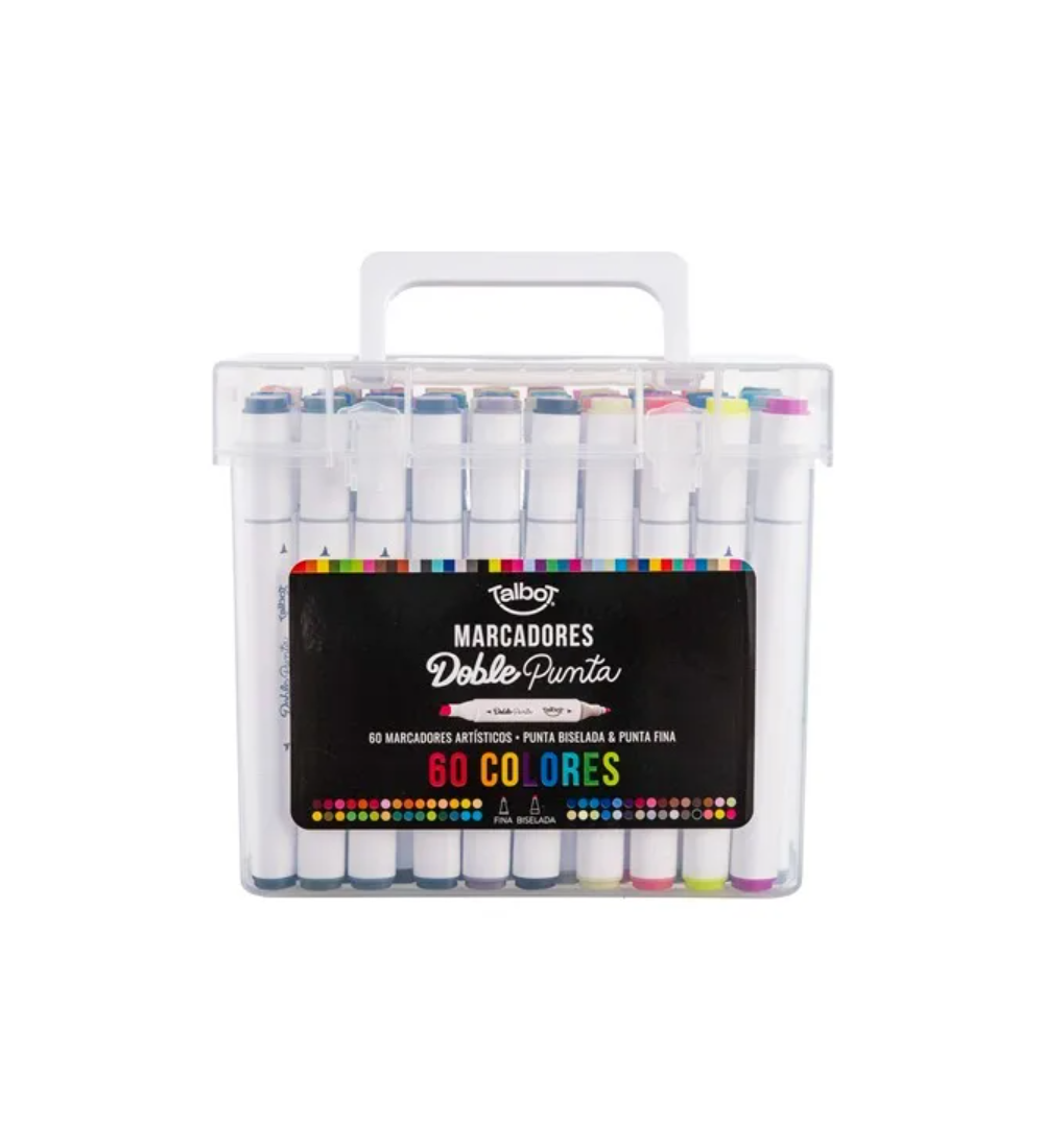 Set de 60 marcadores Talbot de doble punta con una amplia gama de colores vibrantes.