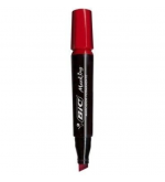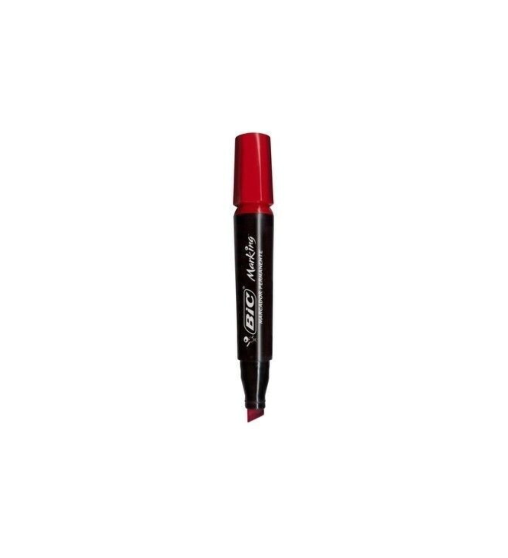 Marcador permanente BIC Marking rojo con punta biselada para trazos precisos.