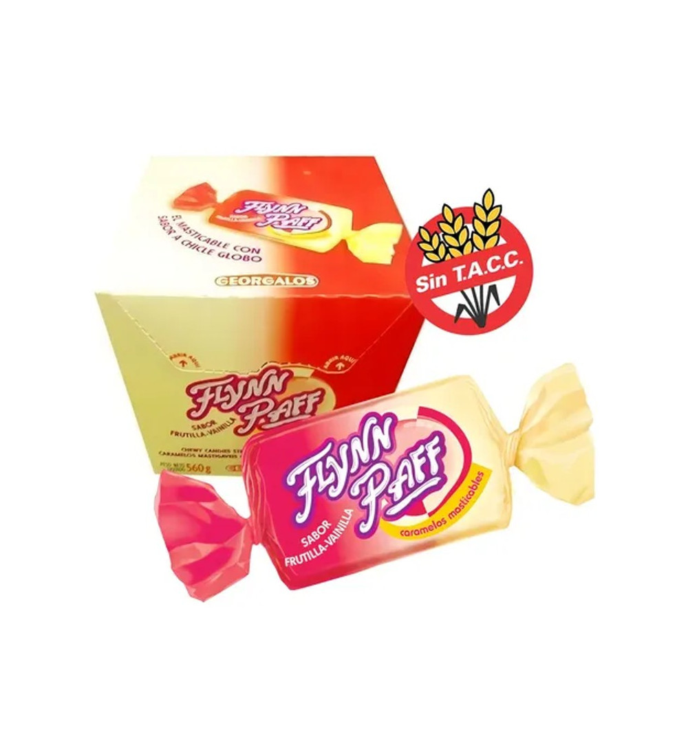 ¡La explosión de sabor que estabas esperando! Los masticables Flynn Paff combinan la dulzura de la frutilla con la suavidad de la vainilla en un solo caramelo. Con 70 unidades en cada paquete, tenés suficiente para compartir con amigos, llevar a la escuela o disfrutar en cualquier momento del día. Su textura masticable y su sabor irresistible los convierten en el snack perfecto para grandes y chicos. ¡Dejate tentar por esta combinación única!