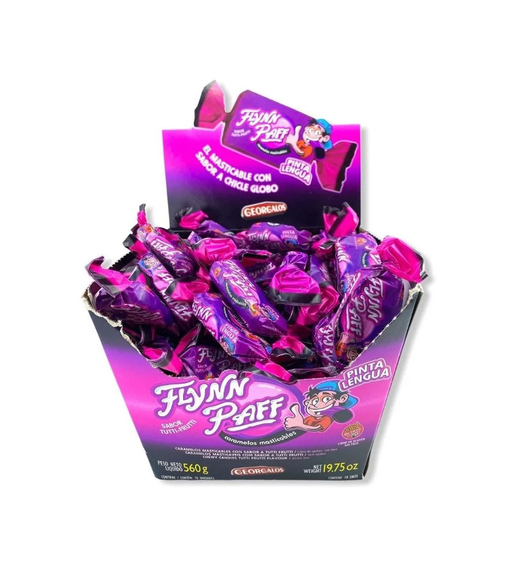 Caramelos Flynn Paff que pintan la lengua, ideales para divertirte y compartir.