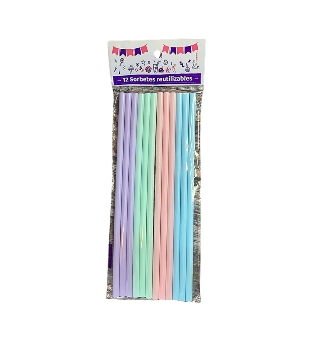 SORBETES PLASTICO REUTILIZABLE PASTEL X 12 UNIDADES