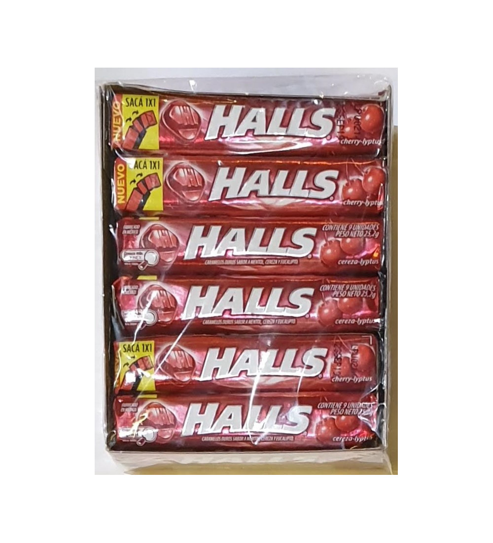 Refrescate con el intenso sabor a cereza y eucalipto de las Pastillas Halls Cherry Lyptus.