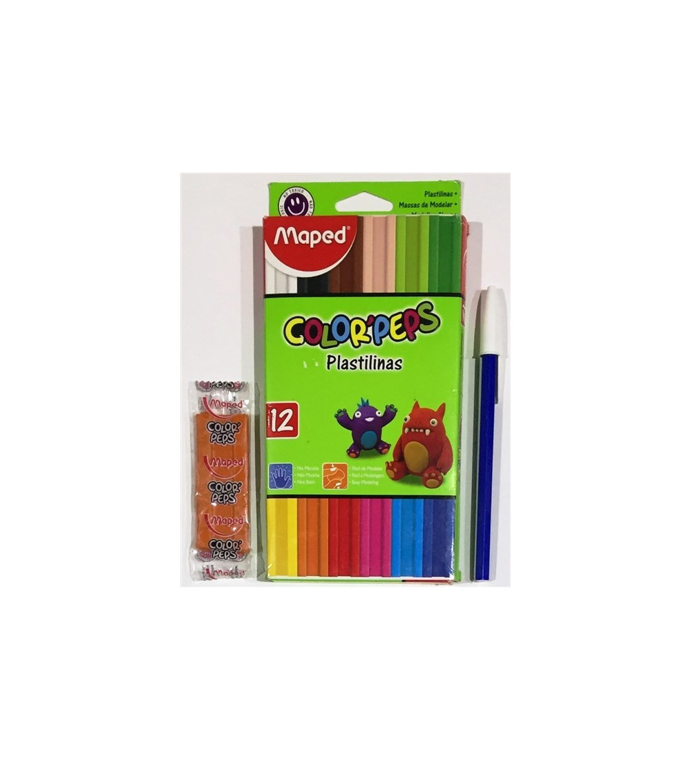 Plastilina Maped en 12 colores surtidos, ideal para desarrollar la creatividad infantil.