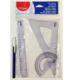 Set de geometría Maped con regla, escuadra y transportador, ideal para estudiantes.