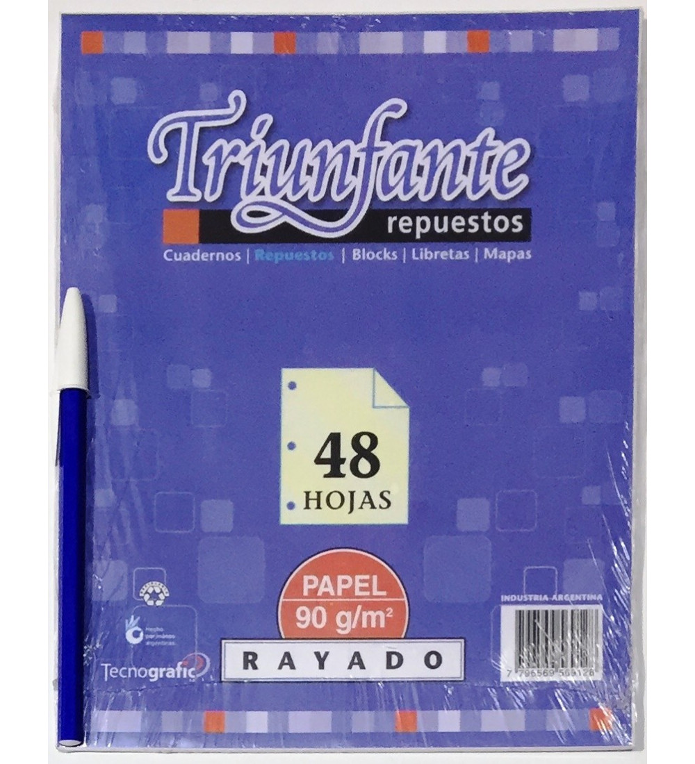 Completá tus carpetas con el Repuesto Triunfante de 48 hojas rayadas de alta calidad.