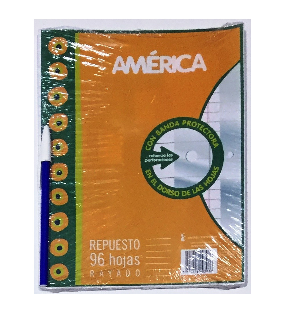Repuesto América de 96 hojas rayadas para tus apuntes y trabajos.