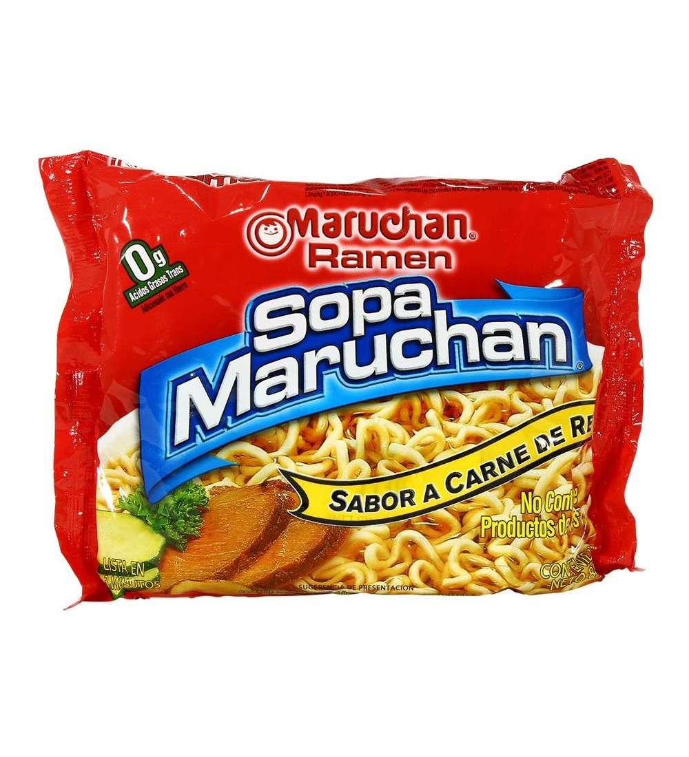 Sopa instantánea Maruchan sabor carne de res, una opción rápida y sabrosa.