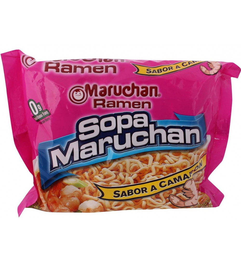 Sopa instantánea Maruchan sabor camarón, una opción rápida y sabrosa.