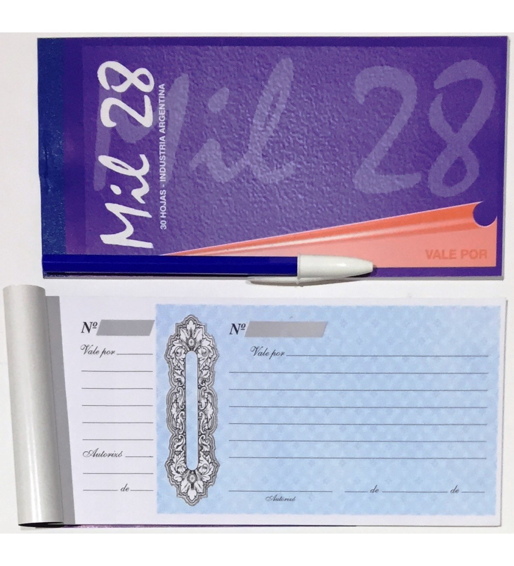 VALE MIL 28 CHICO: Este talonario es ideal para llevar un registro ordenado de tus ventas o transacciones. Su tamaño chico lo hace práctico para llevarlo a todos lados, ya sea en tu negocio, feria o evento. Cada vale te permite registrar información importante como la fecha, el monto y la descripción del producto o servicio. Simplificá tu administración y tené un control preciso de tus ingresos con este talonario Vale Mil 28 Chico. ¡Un aliado indispensable para tu emprendimiento!