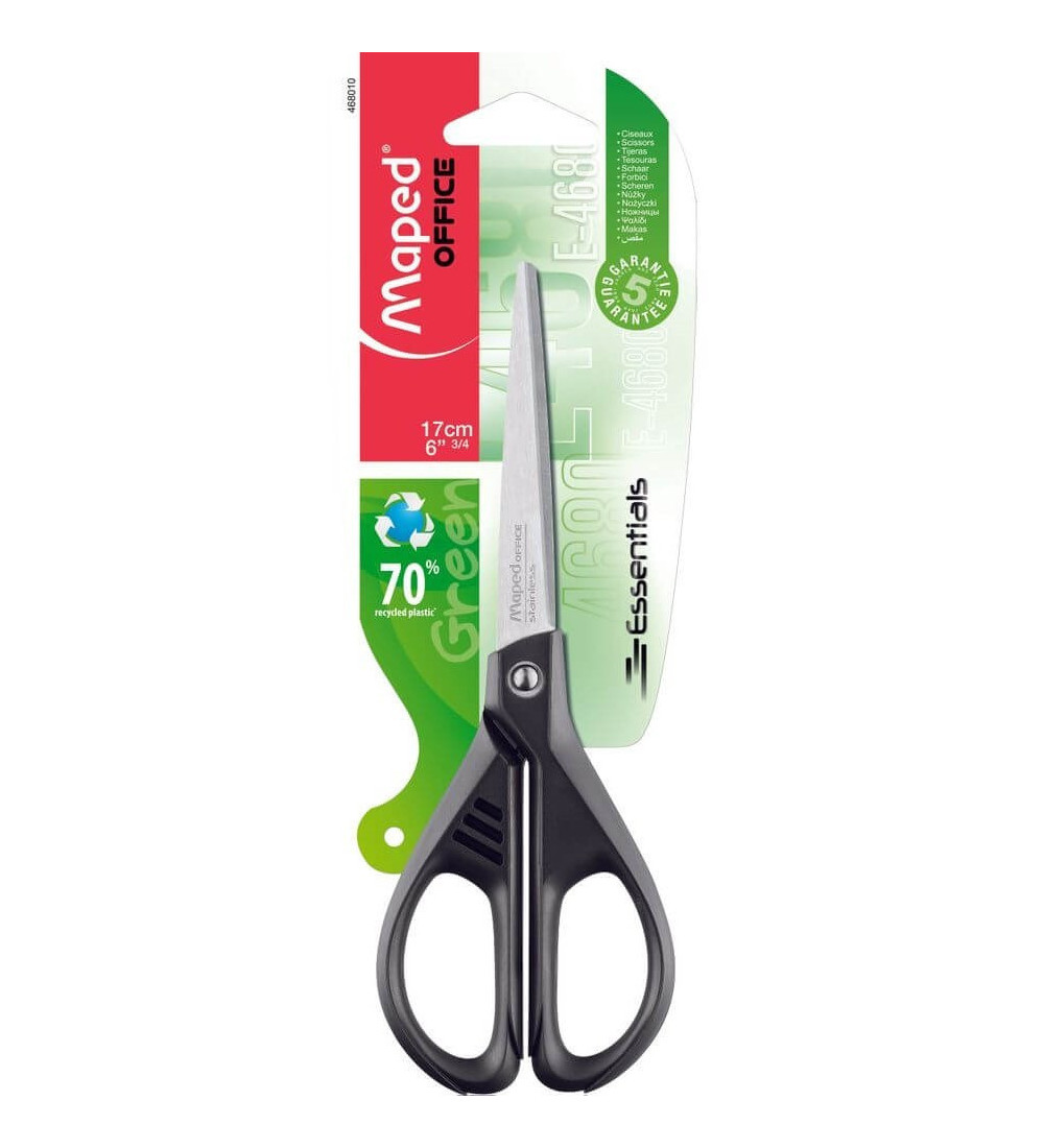 Tijera Maped Essential de 17cm, ideal para cortar con precisión y comodidad.