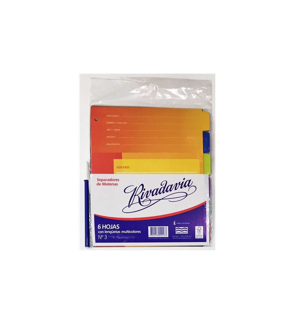 SEPARADOR RIVAD Nº3 6 HOJAS COLOR